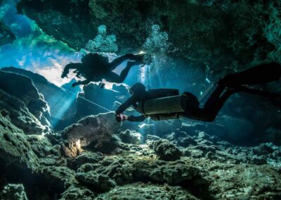 Todas las inmersiones se realizan bajo la supervisión de guías certificados TDI/SDI, expertos en navegación de cavernas y protocolos de seguridad. Antes de cada buceo se realiza un briefing técnico, revisión de equipo y recordatorio de comunicación bajo el agua. Nuestro objetivo es garantizar que cada buzo viva una experiencia segura, profesional y profundamente inspiradora.