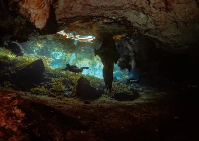 Esta combinación de cenotes representa dos caras de un mismo mundo subterráneo: la fuerza y la quietud, la profundidad y la delicadeza. Una experiencia creada para buzos certificados que buscan algo más que una inmersión; una forma distinta de entender la belleza del inframundo maya.