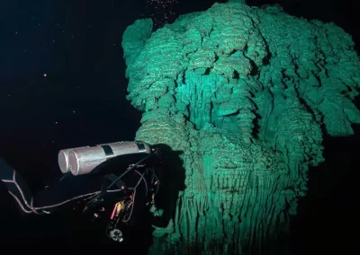 Su estructura vertical y el entorno oscuro ofrecen una inmersión intensa y desafiante, ideal para buzos avanzados que buscan un escenario fuera de lo común. La sensación de flotar entre estas formaciones únicas convierte esta experiencia en una de las más sobrecogedoras y fascinantes de toda la región.