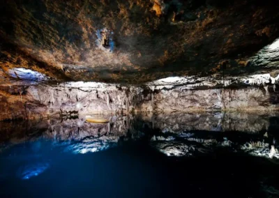 La inmersión se realiza con linternas, revelando detalles ocultos en un entorno oscuro y mágico: una experiencia ideal para quienes buscan una conexión íntima con el inframundo natural de la península.